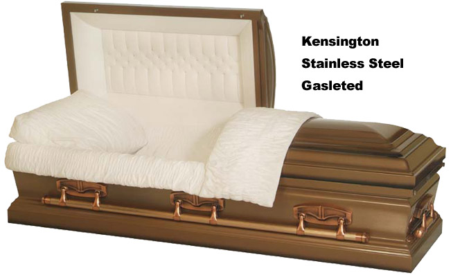 Metal Caskets are made of Steel and are categorized two different ways. First is by the gauge (thickness) of the metal. The smaller the gauge the thicker the metal. Second is whether it is Gasketed or Non-Gasketed. Gasketed means there is a rubber gasket around the lip of the casket which adds another level of protection. Most often then not, Gasketed caskets also have a locking ability. Non-Gasketed caskets simply close with two clasps.