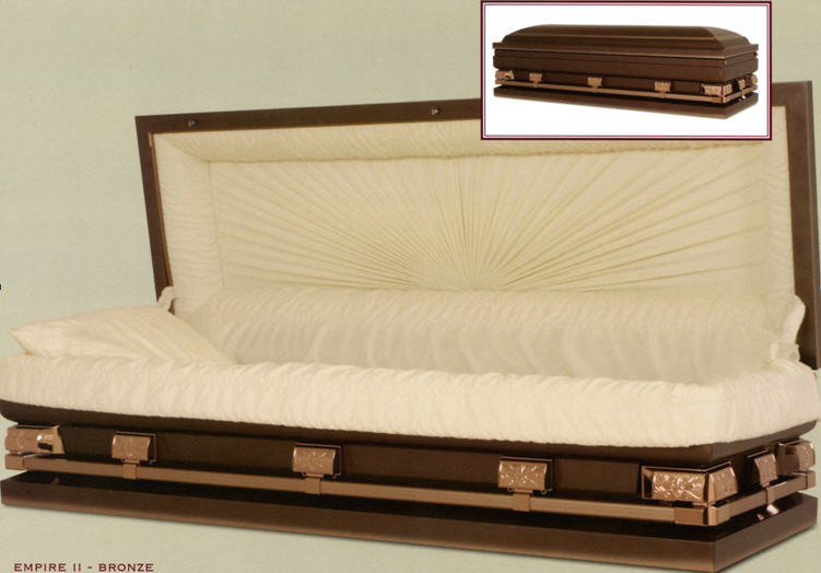 Semi-Precious metal caskets are made of Bronze, Copper and Stainless Steel. Bronze and Copper Caskets are determined by ounces per square foot. Like Steel Caskets, Stainless steel caskets are also determined by gauge. All of the fore mentioned aforementioned are naturally rust resistant. These are some of the Semi-Precious metal and Stainless Steel caskets we offer.
